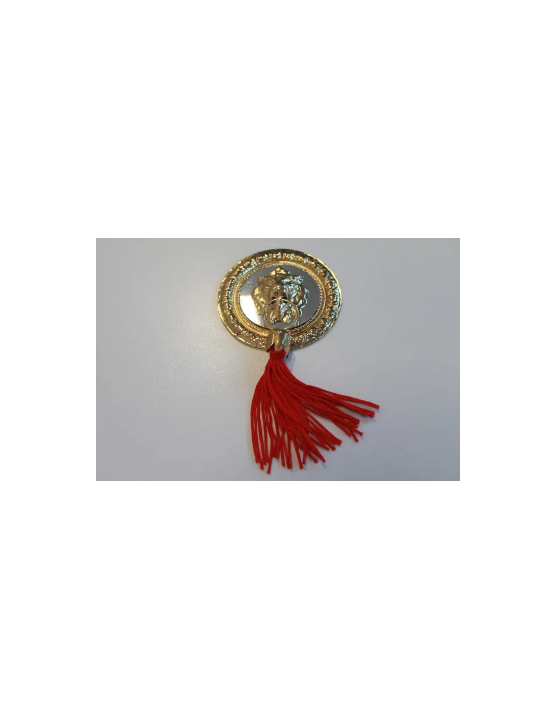 SPECCHIETTO GRANDE CON LEONE DORATO E NAPPINA ROSSA