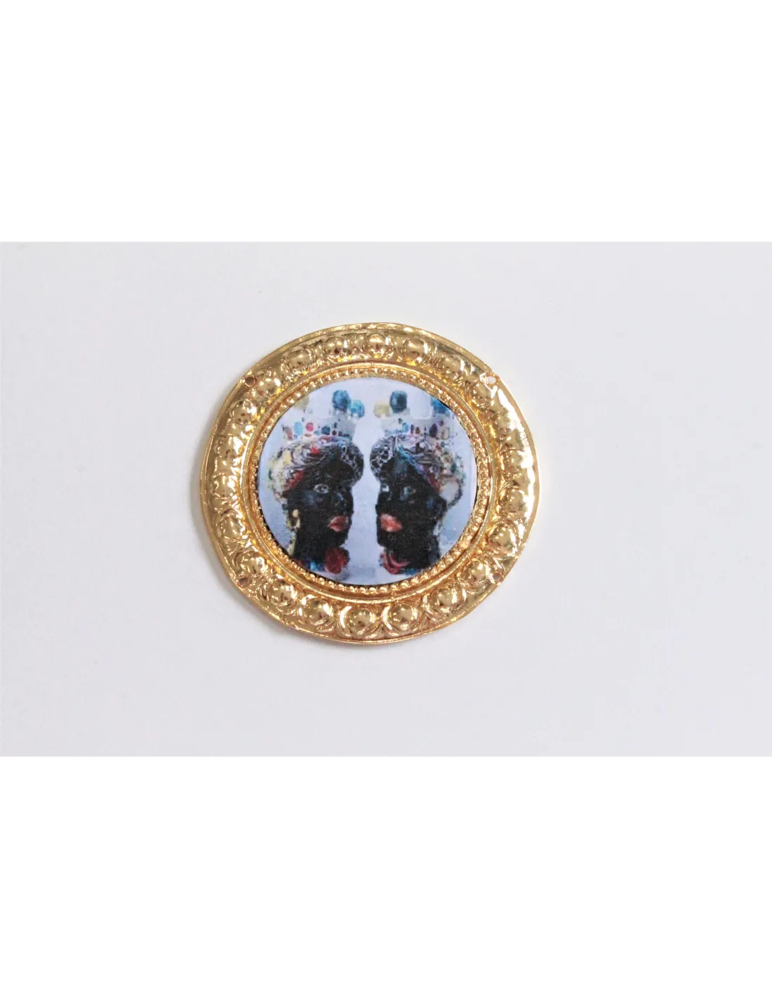 TONDO RAFFIGURAZIONE DUE MORI ORO DIA. 6 CM