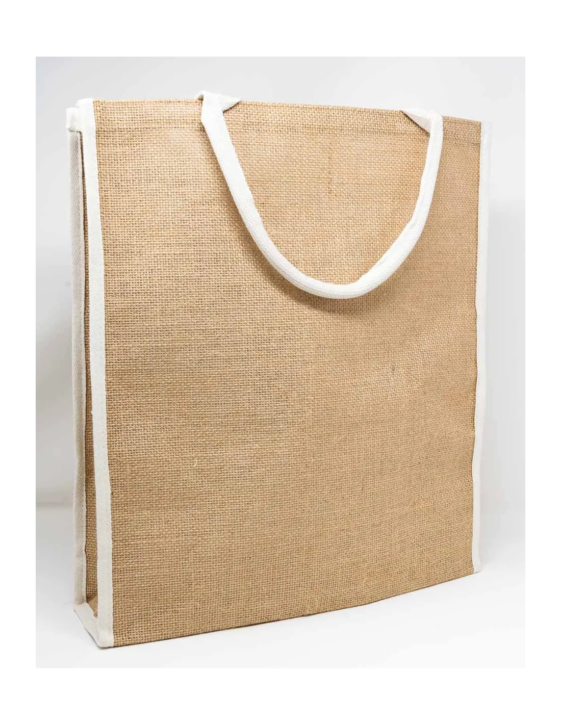 Borsa di iuta. Misure: altezza 42cm, largezza 38cm, spessore 12cm. Colore juta naturale. Confezioni da 1 pezzo.