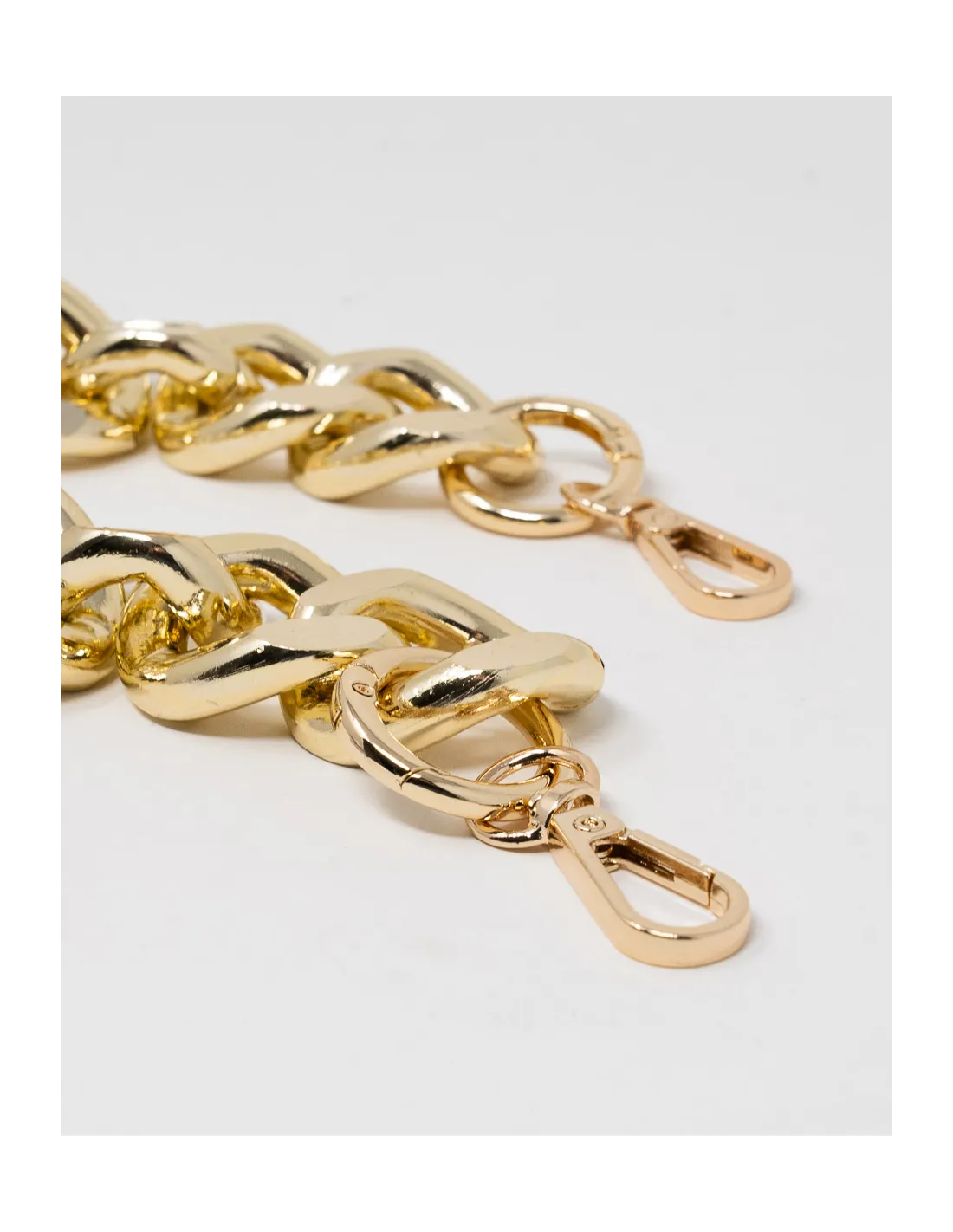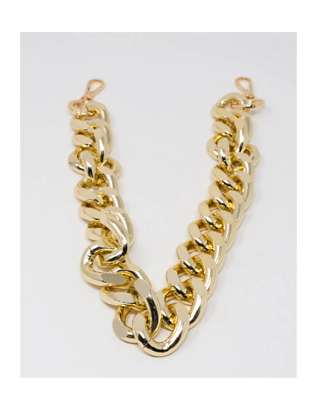 Tracolla a catena, lunga 60cm con moschettoni. Maglie 2cm. Disponibile oro e argento. 1 pezzo per confezione.
